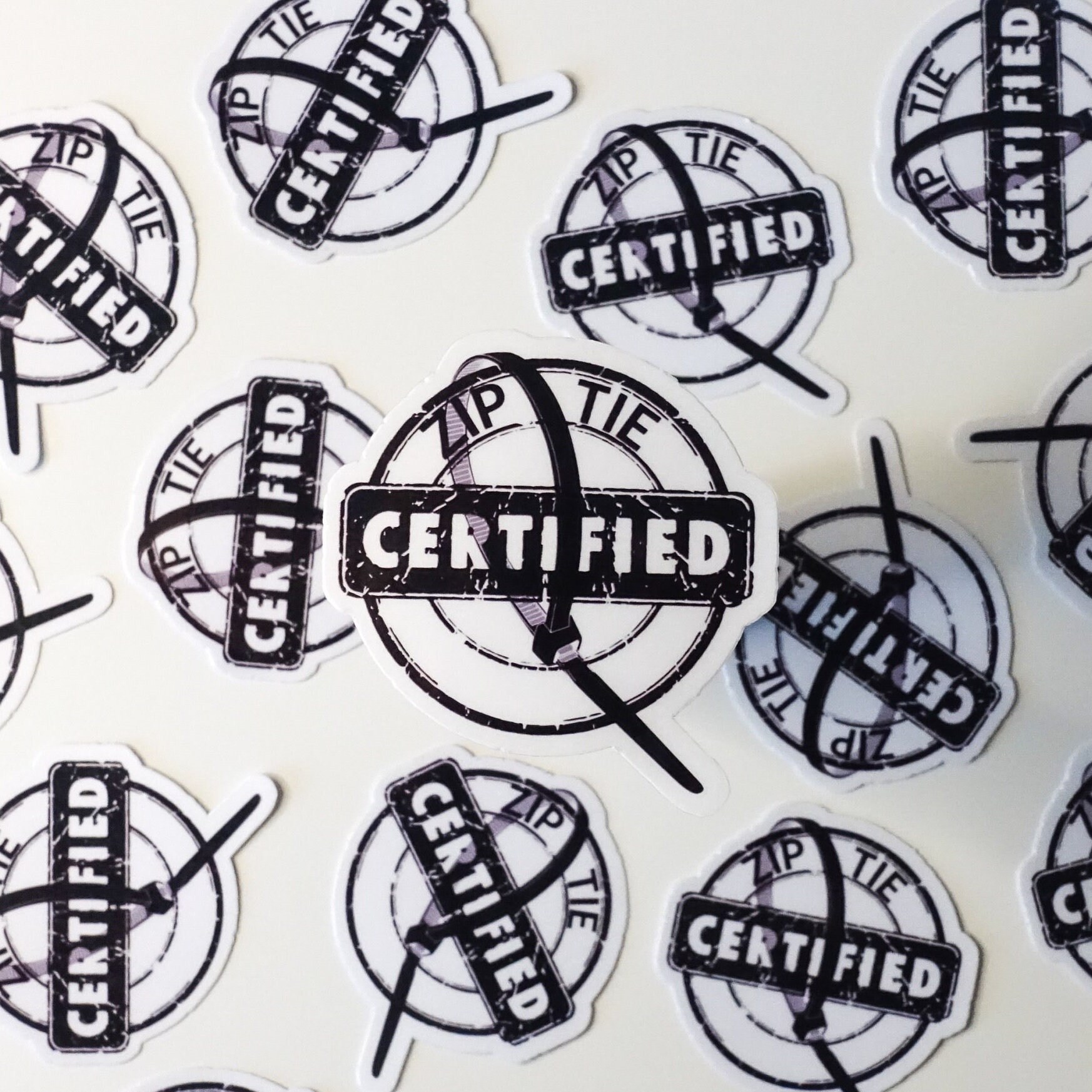 Zip Tie Certified Funny Glossy Vinyl Sticker, Tradie, Construction Worker, Labourer, Electricin